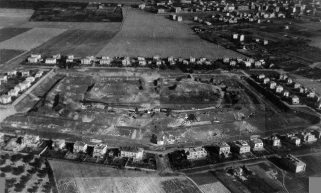Na zdjęciu: Fort Mokotów na zdjęciu lotniczym z 25 września 1939.