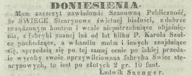 Fabryka Świec i Mydła Karola Scholtzego powstała w 1839.