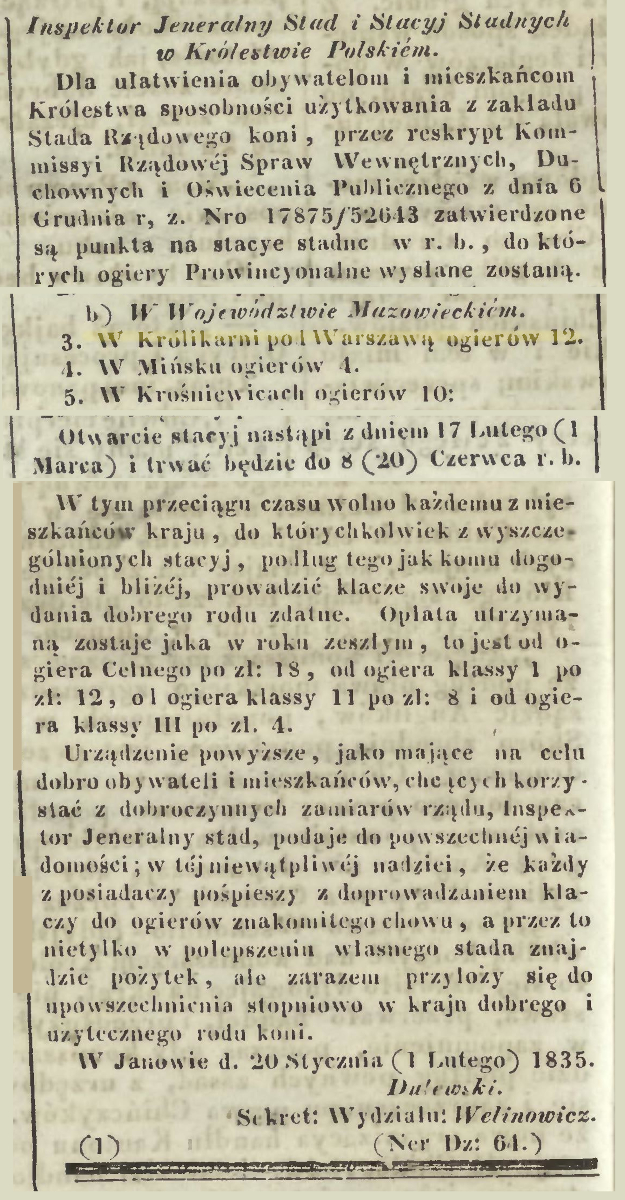 Kurjer Warszawski, 27 lutego 1835, crispa