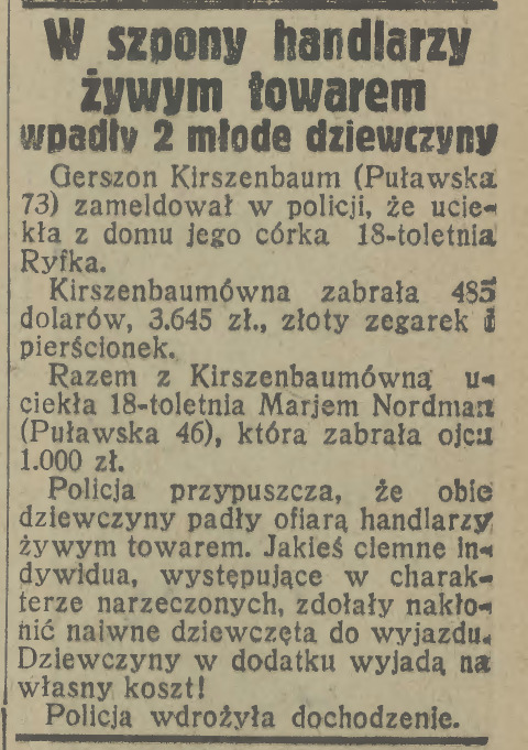 W szpony handlarzy, 1930