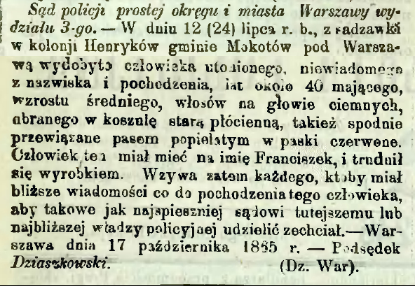 Warszawska Gazeta Policyjna, 28 października 1865, crispa